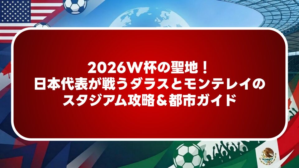 2026年W杯で日本代表がグループステージを戦うダラス(AT&Tスタジアム)とモンテレイ(エスタディオBBVA)を徹底解説。スタジアムの特徴から現地の治安、グルメ、気候、移動のコツまで、現地観戦を予定しているファンが知っておくべき情報をプロの視点で詳しく紹介します。