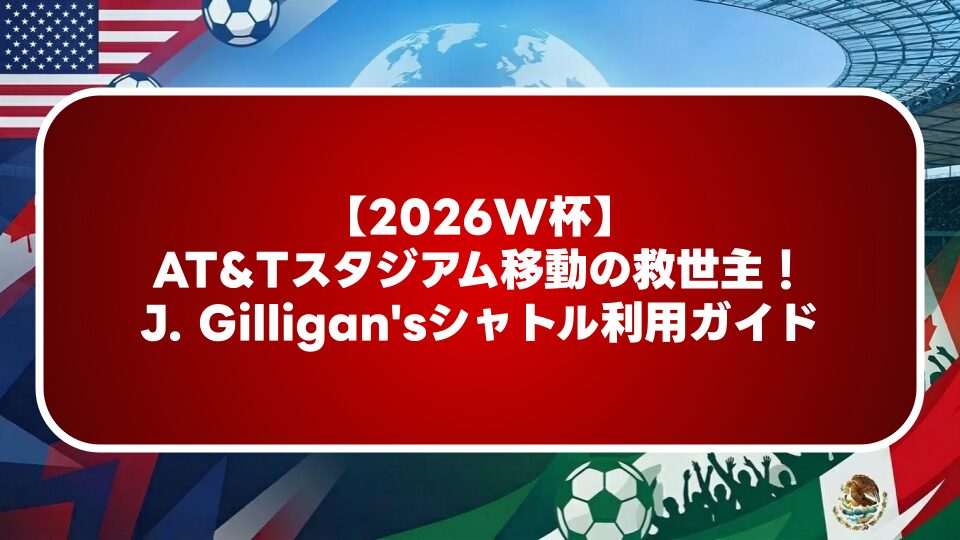 AT&Tスタジアムの駐車場代100ドルを無料にする裏技!地元民御用達「J. Gilligan's」のシャトルバス利用法を徹底解説。予約なしでも乗れる?料金は?試合後のUber地獄を回避し、ストレスフリーでサッカー観戦を楽しむための実用ガイドです。 -