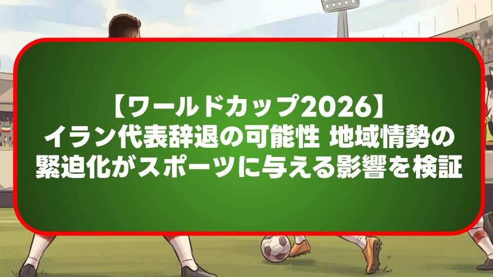 【ワールドカップ2026】イラン代表辞退の可能性|地域情勢の緊迫化がスポーツに与える影響を検証