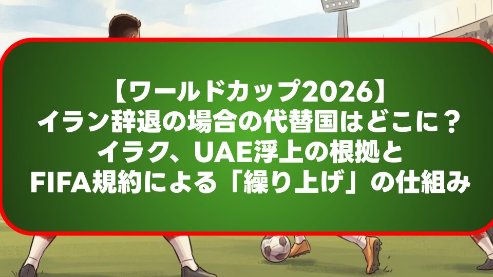 【ワールドカップ2026】イラン辞退の場合の代替国はどこに?イラク、UAE浮上の根拠とFIFA規約による「繰り上げ」の仕組み