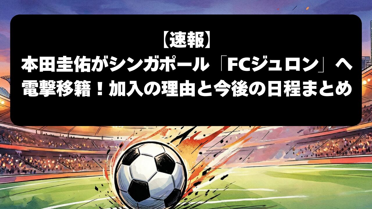2026年4月10日、世界のサッカー界に衝撃が走りました。元日本代表で、かつてイタリアの名門ACミランで「背番号10」を背負った本田圭佑選手が、シンガポール・プレミアリーグ(SPL)の「FCジュロン」に加入することが正式に発表されたのです 。