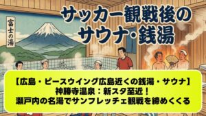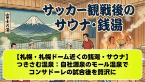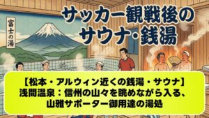サウナデータ:「天童最上川温泉 ゆぴあ」は大人350円という格安料金ながら、広々としたサウナと水風呂を完備しており、サポーターに大人気です 。公衆浴場の「はな駒荘」も350円で高品質な天然温泉を楽しめます 。 おすすめの入り方:温泉街にある無料の足湯「駒の湯」で、まずは歩き疲れた足をリフレッシュ 。その後、旅館の日帰り入浴や公衆浴場で本格的に汗を流し、硫酸塩泉の血流改善効果で試合の疲れをリセットするのがおすすめです。 アメニティ:公衆浴場は石鹸・タオルの持参が必要な場合がありますが、旅館の日帰り入浴ではレンタルも充実しています。