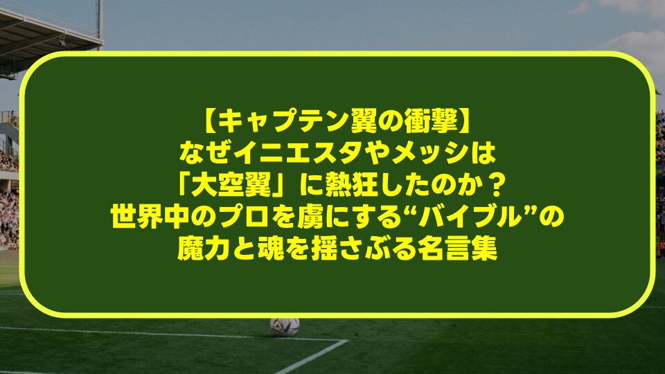 当サイトのコンテンツは、スポーツ心理学の知見、著名なプロサッカー選手の公式インタビュー、および作品に関する公開情報に基づき作成・編集を行っております。作品が選手に与えた心理的影響については、個人の感性や成長環境、時代背景による影響もあり、必ずしもすべてのプロ選手において同様の心理的効果を保証するものではありません。また、掲載されている名言やエピソードは一般的な資料に基づいた解釈であり、本記事の情報を利用したことによるいかなる損害についても、当サイトは責任を負いかねます。名作が持つ多大なエネルギーを、サッカーをより深く、楽しく観るためのエッセンスとしてお楽しみください。