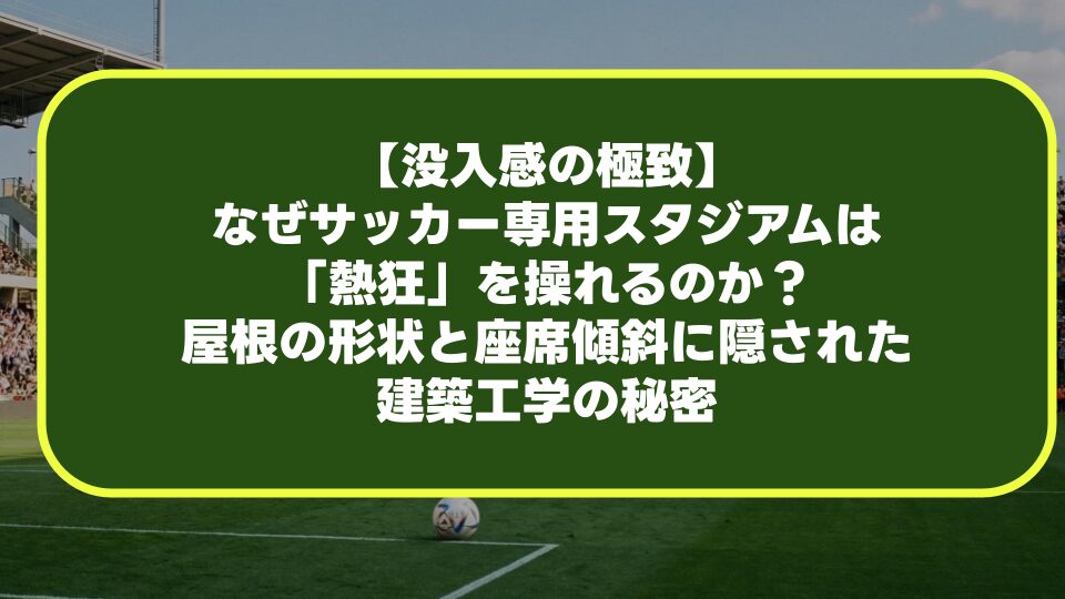 【没入感の極致】なぜサッカー専用スタジアムは「熱狂」を操れるのか?屋根の形状と座席傾斜に隠された建築工学の秘密