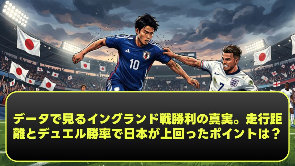 スコアは1-0。しかし、その最小得点差以上の衝撃がデータには刻まれていた。日本代表がイングランド代表を撃破した歴史的一戦において、数字が物語るのは「奇跡」ではなく「必然」としての勝利である。ボールポゼッションこそイングランドに譲ったものの、走行距離、スプリント回数、そして何より中盤でのデュエル勝率において、日本は欧州の強豪を圧倒した。本稿では、Optaや各種スタッツに基づき、なぜ日本がイングランドの猛攻を耐え抜き、勝利を手にすることができたのか、その「真実」を数字から徹底解剖する。