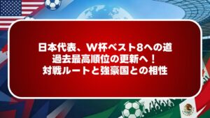 - 懸念: 北米特有の移動距離と気候。特にモンテレイ(メキシコ)とダラス(アメリカ)を往復するグループリーグでは、リカバリーの成否がパフォーマンスに直結する 。