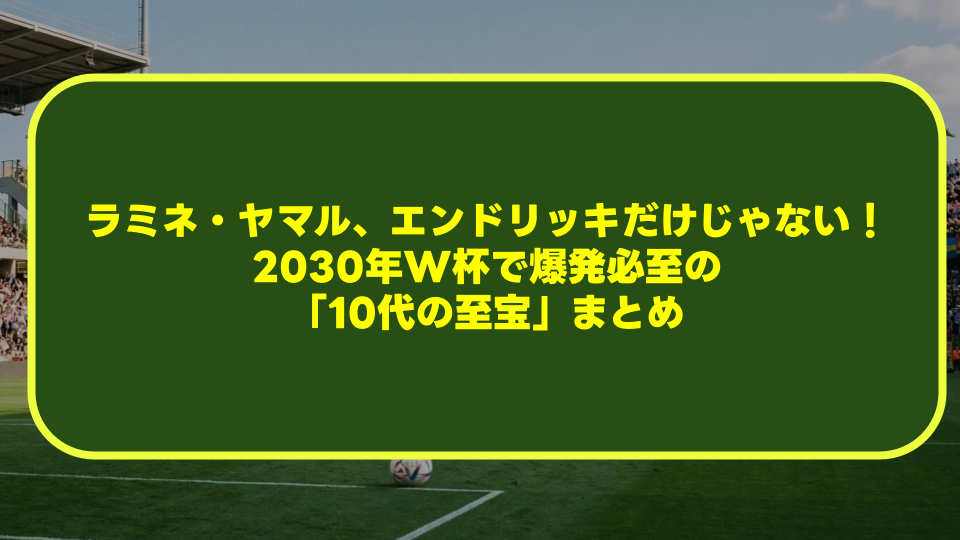 本記事では、2030年ワールドカップ(100周年記念大会)でブレイクを果たす、あるいはすでに代表の主軸となっている可能性が高い「ヤマル&エンドリッキ以外の10代の超新星」を厳選してご紹介します。