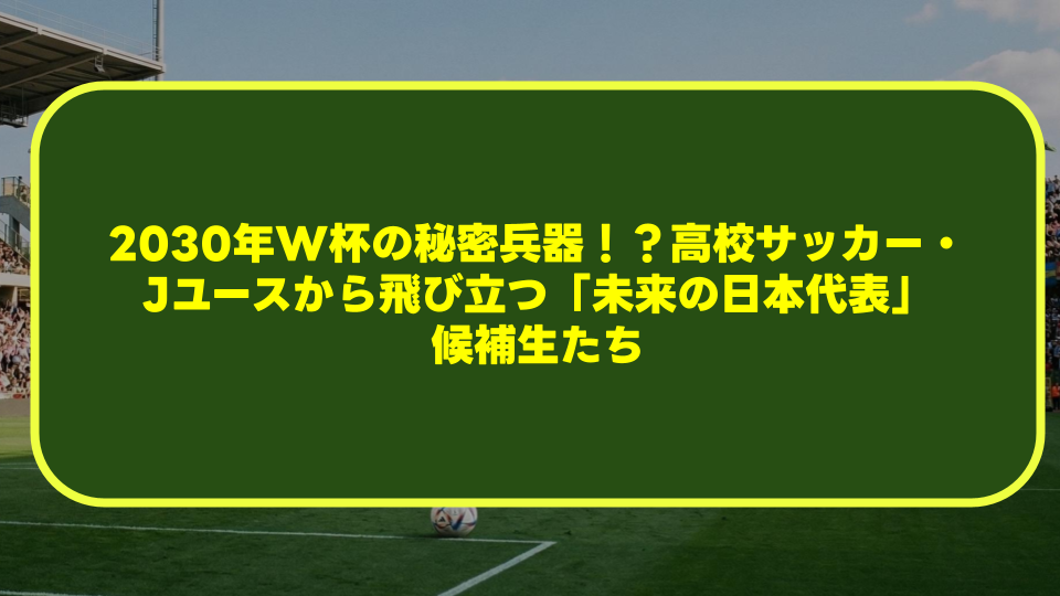 本記事では、現在(2026年)の高校サッカー界やJリーグのユースチームで異彩を放ち、2030年に「日本の秘密兵器」となり得る10代の有望株たちを徹底解説します。