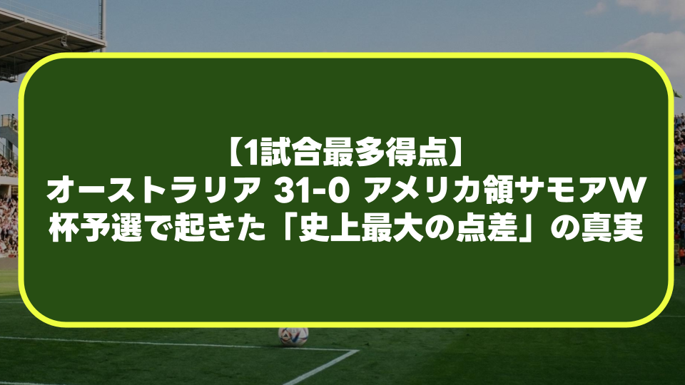 2001年4月11日、日韓ワールドカップ・オセアニア予選で起きた「オーストラリア 31-0 アメリカ領サモア」の一戦。この試合は単なる大勝劇ではなく、サッカー界の勢力図を塗り替え、FIFAのレギュレーションをも動かした歴史的転換点でした。